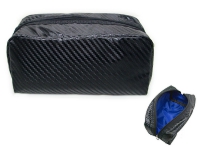 パンチングレザー、カーボン調の合皮を使用した製品。